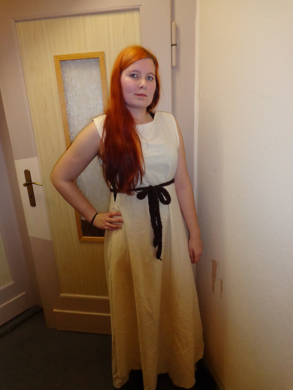 Mein Kleid ist auch fertig geworden, ich bin zufrieden mit dem Ergebnis, überlege aber noch ob ich es grün färben sollte. Den Gürtel habe ich mit der Variante Fingerstricken gefertig (ja das kann ich sogar ziemlich schnell). Material ist Filzwolle zum Stricken.